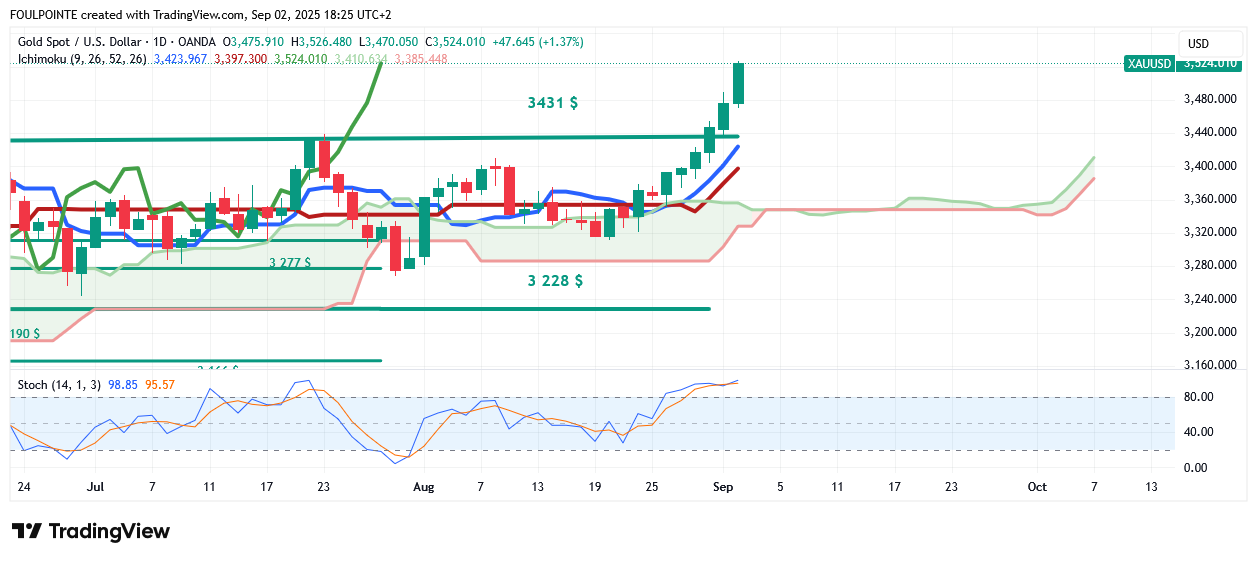 3526 $ comme nouveau plus haut et 3524 $ actuellement