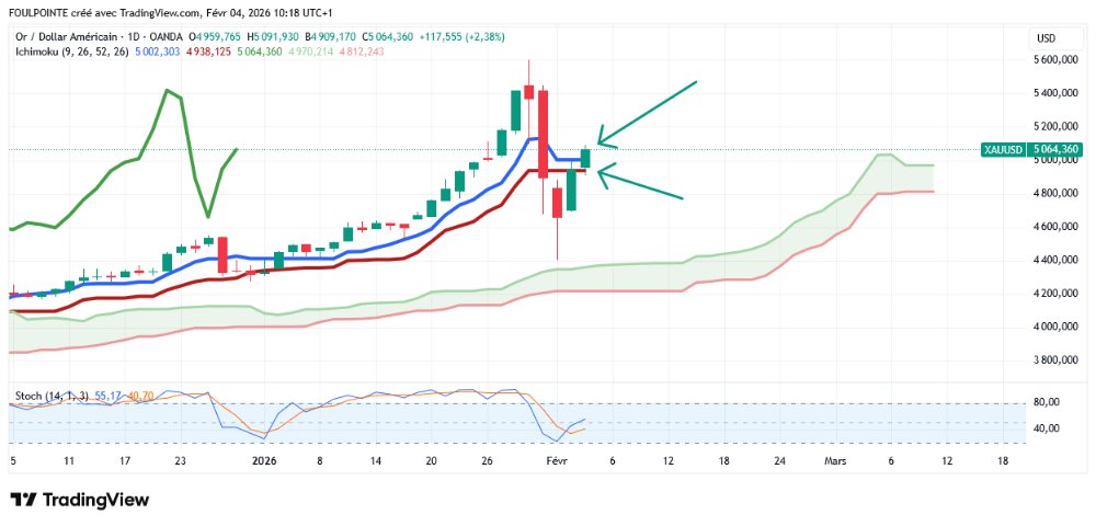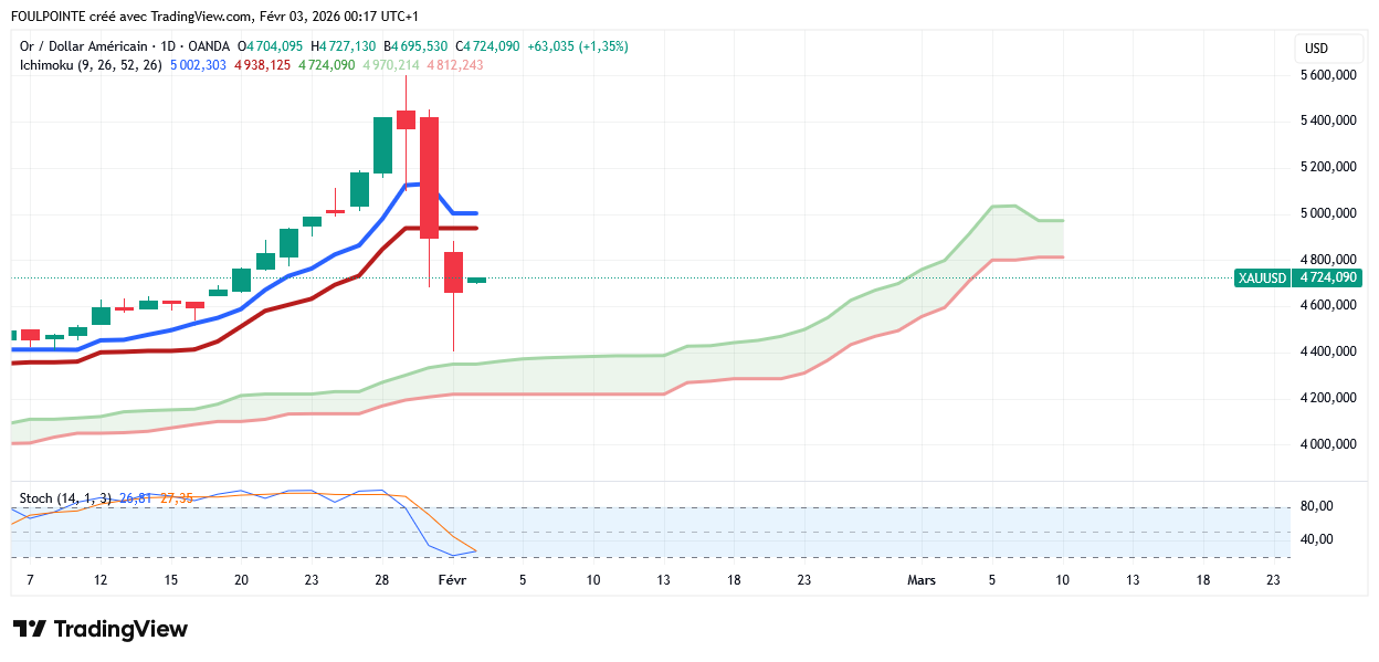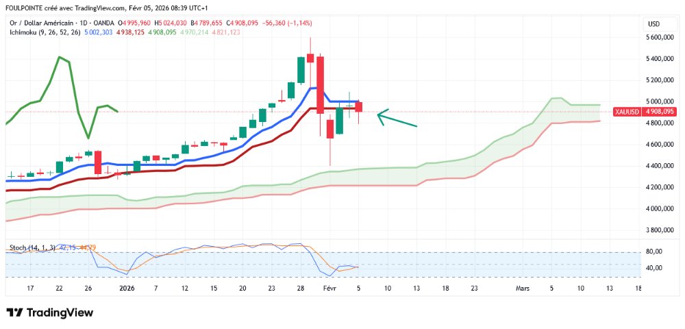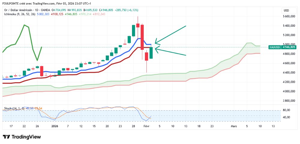 Nous avons donc clôturé ce soir sur les 4 946 $ juste au-dessus des 4 938 $ de la kijun.