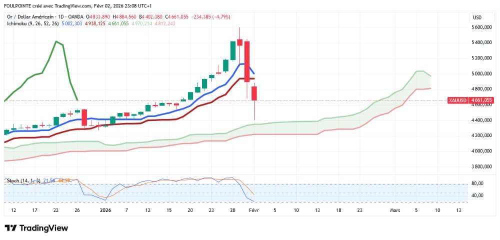 Bien que le cours de l'or n'ait pas réussi à se maintenir au-dessus du seuil initial de 5 000 dollars l'once et que la pression à la vente durant la nuit l'ait fait chuter à 4 402 dollars l'once, il a depuis rebondi de manière significative. L'or au comptant s'échangeait à 4 747,90 $ l'once, en baisse de près de 3 % sur la journée.