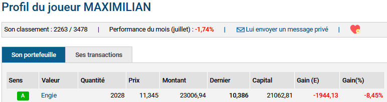Juste un conseil d’ami : ne place jamais un centime en bourse, tu le perdrais à coup sûr.