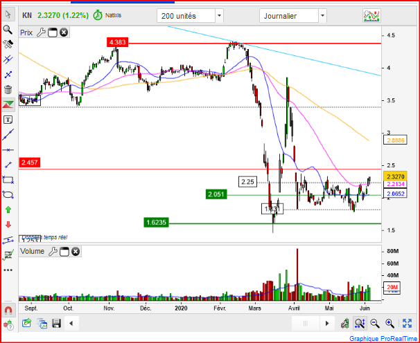 Moi je pense que s'il nya pas de deuxième vague de Corona l'action devrait revenir assez vite sur une résistance de 3,5 euros comme le graphique le montre bien.