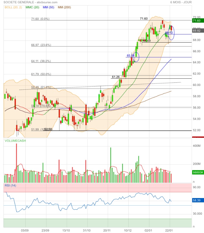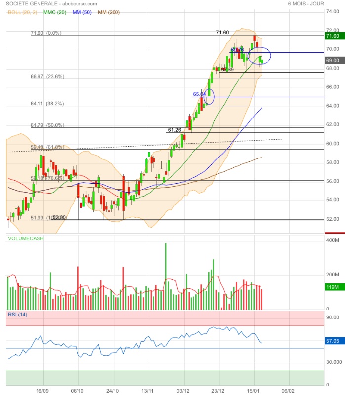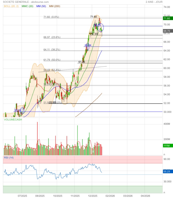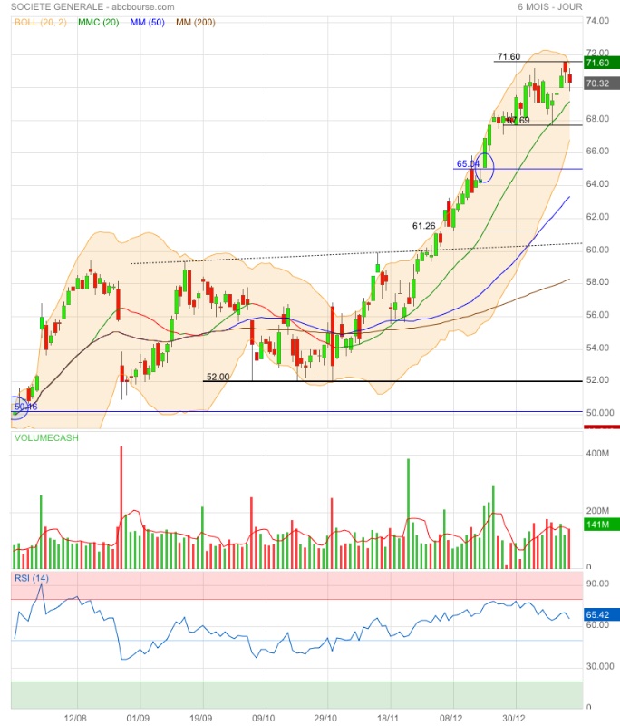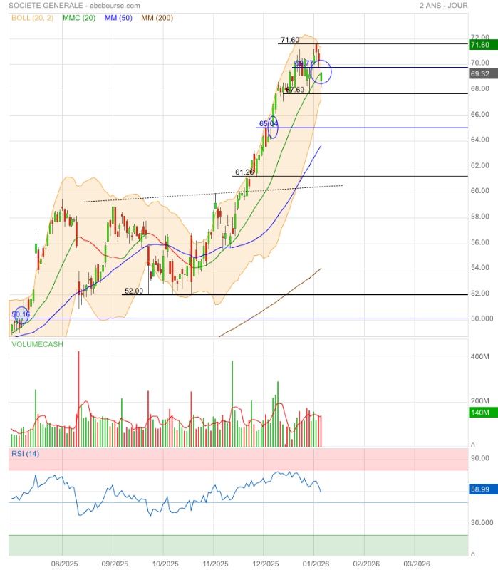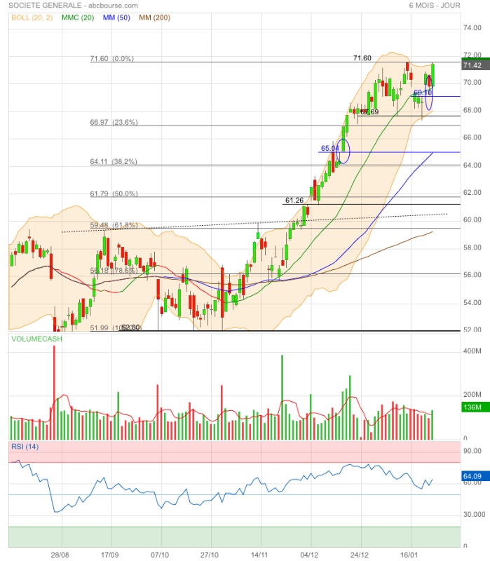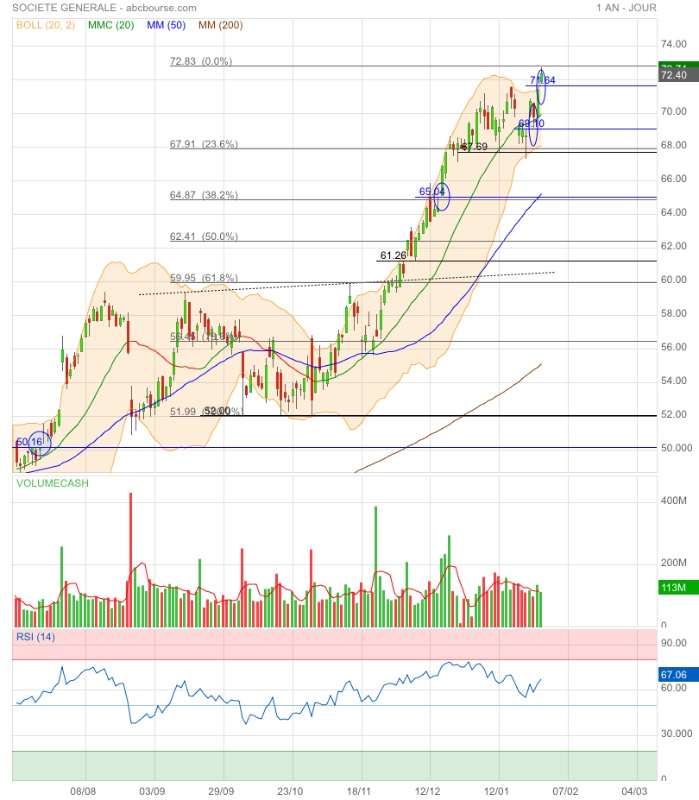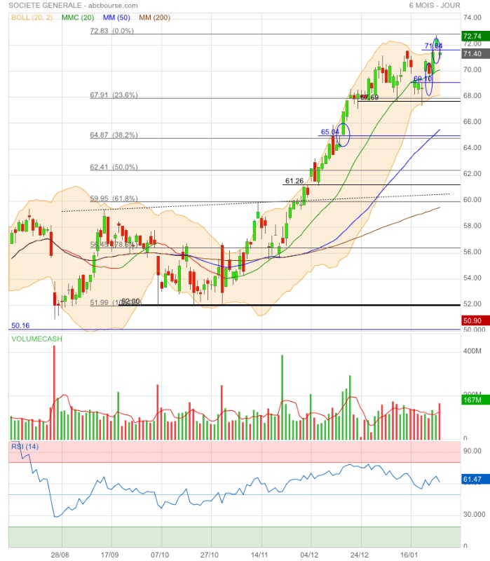 Amorce de double top ou élan pour franchir l’obstacle 71,60€ ? 🤔