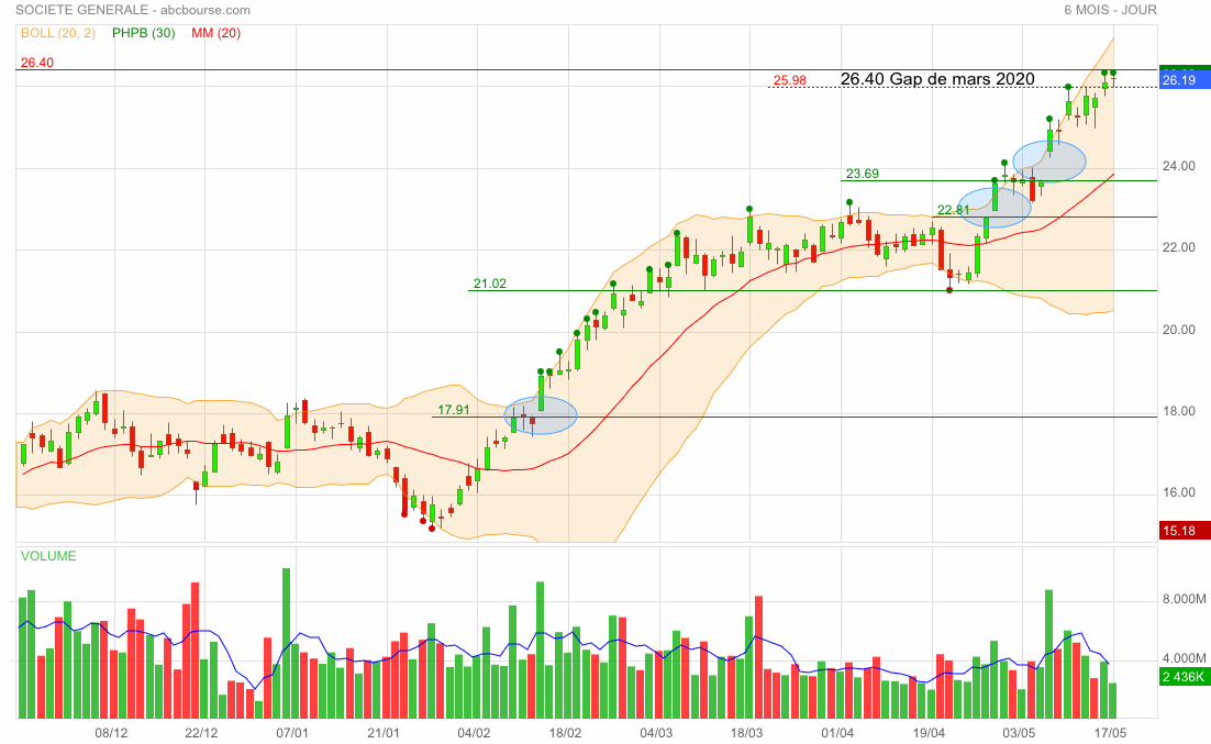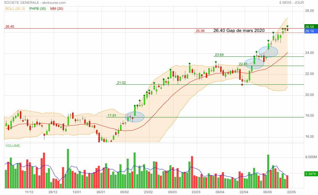 Le 18 mai, ce soir on clôture à 26,160 € après avoir fait un plus bas à ... 26,10 € !