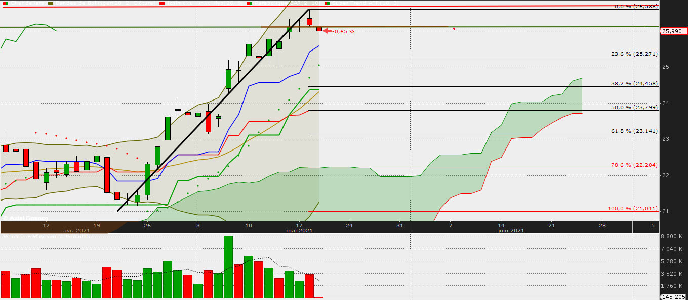 Le 17 mai on clôture à 26,195 € après avoir fait un plus bas à 25,975 €