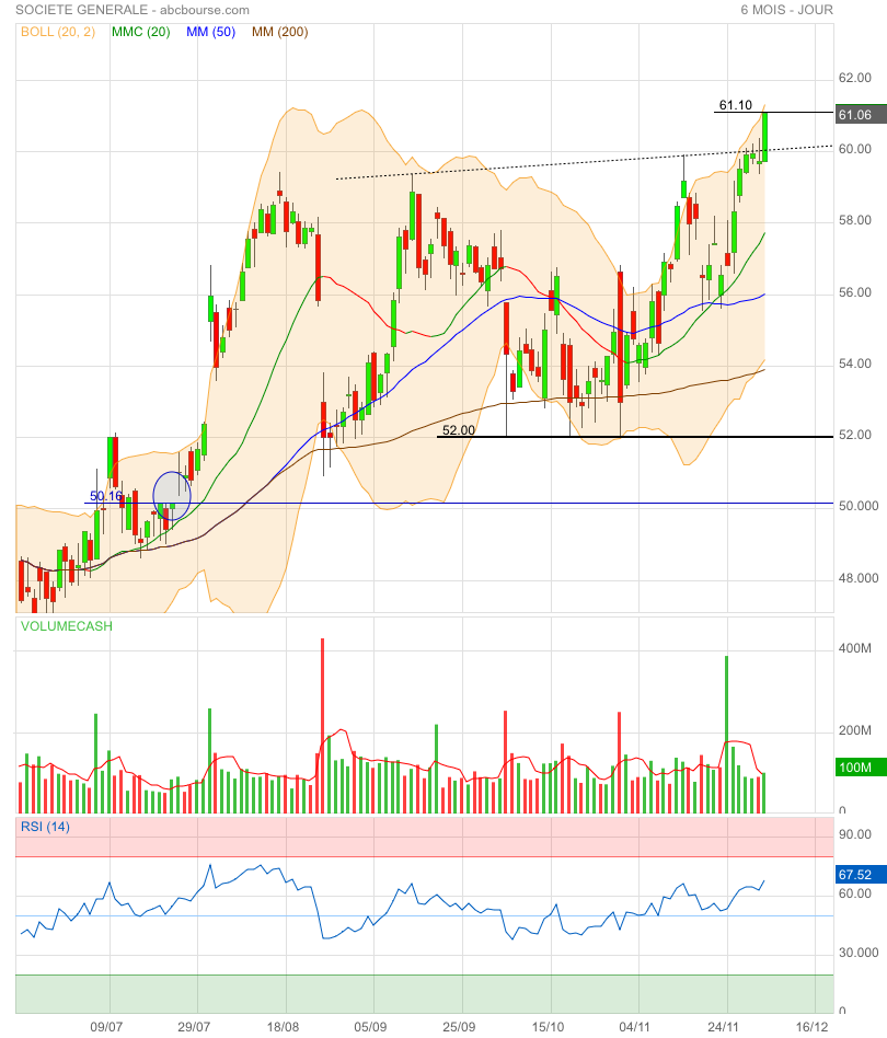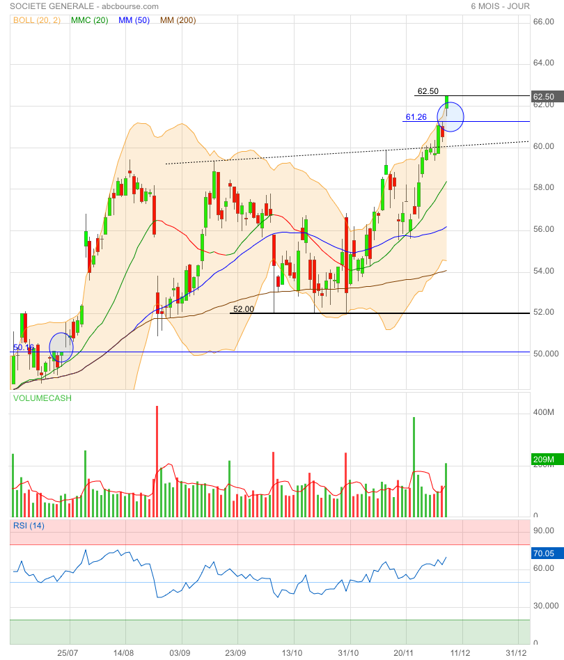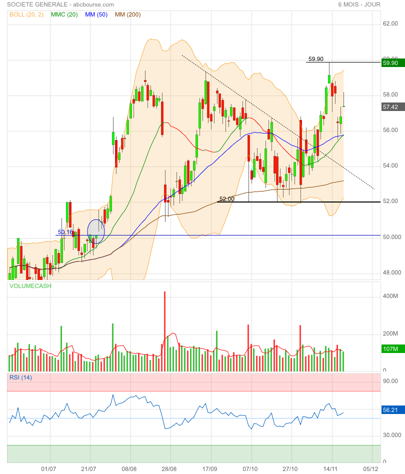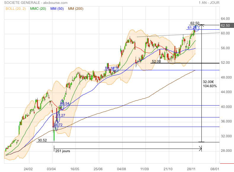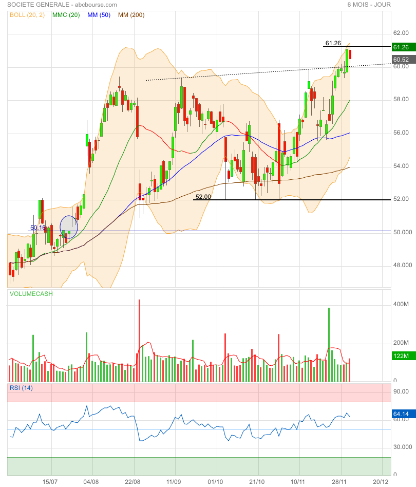 Vu la performance enregistrée, j'ai le temps et rien que Soc Gen restera à 62,50 ! Elle peut rebaisser de 5 à 10 % sans que ce soit un problÚme pour autant.