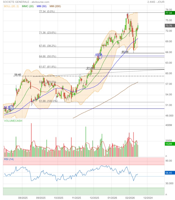 Tendance neutre entre 65,88 et 77.34.
