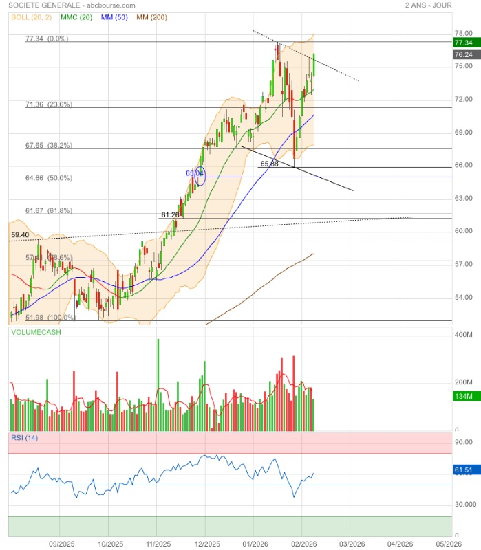 Challenge : fermer le gap 76,90€ puis franchir 76,25€ pour trouver un joli trend neutre 66€ - 77€ 🤔