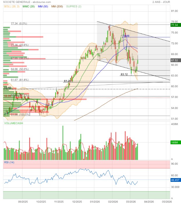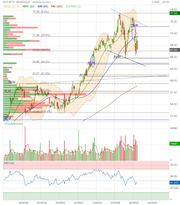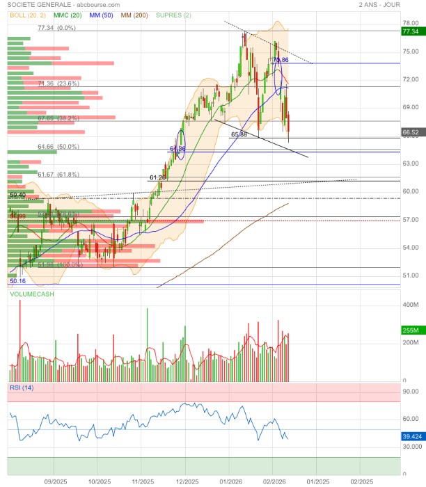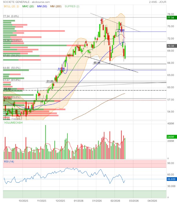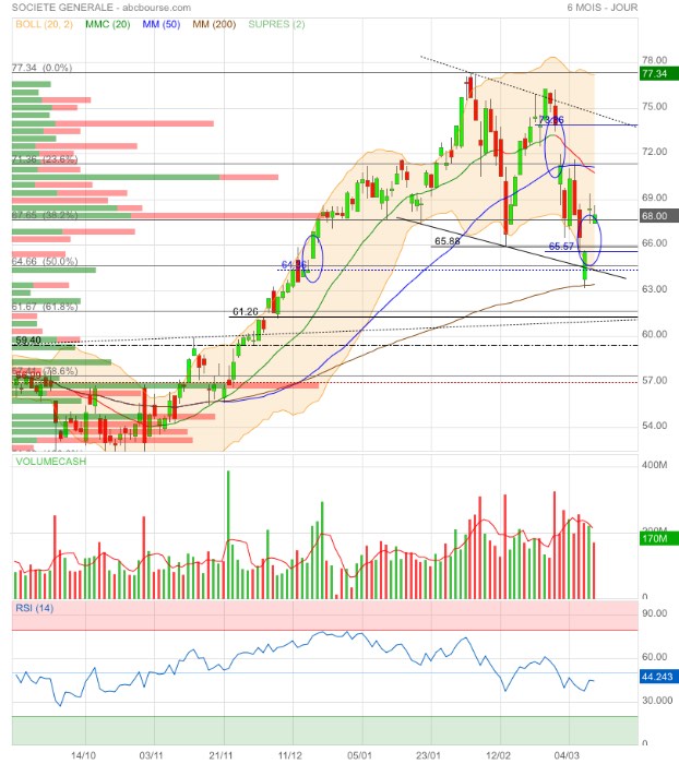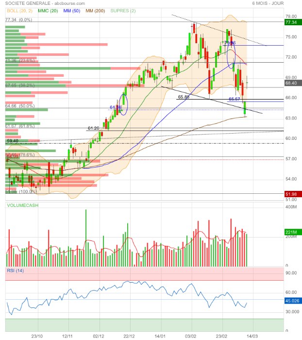 65,88€ sera vraisemblablement testés et, si rupture, direction le gap 64,36€ qui correspond au retracement 50% Fibo de la dernière jolie hausse 🤔