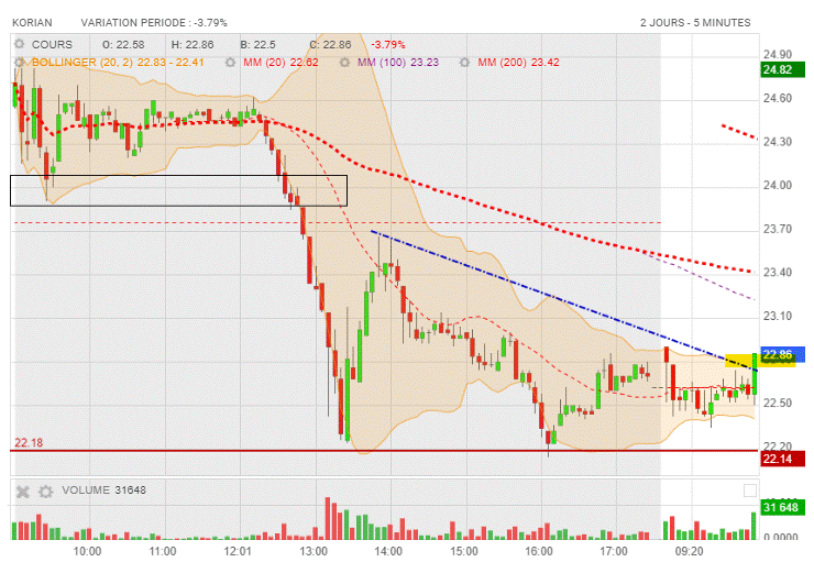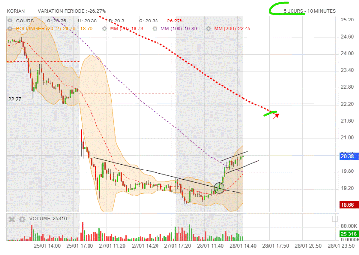 Cette zone est interessante, voir graphe (sell off) 23.80
