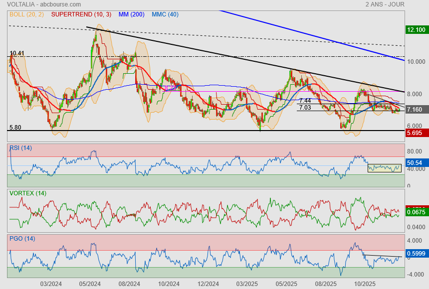 A mon avis tant qu'il n'y aura pas de cession d'actifs et un recentrage stratégique sur l'Europe l'avenir sera compliqué. Pour 2026 je n'imagine pas que Voltalia face des bénéfices à cause de l'écrêtement au Brésil et au prix moyen de l'électricité que vend Voltalia.