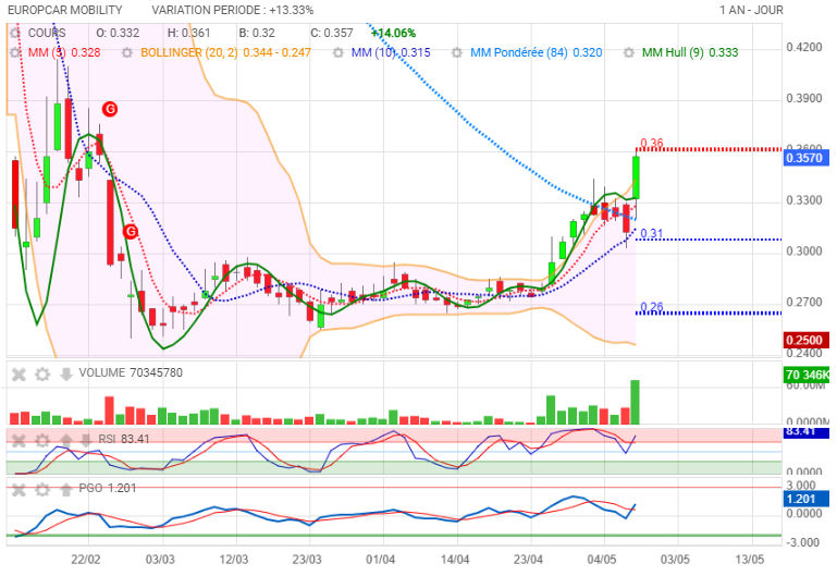 Europcar Mobility va faire des millionnaires ? Cours temps réel: 0,385 7,61%