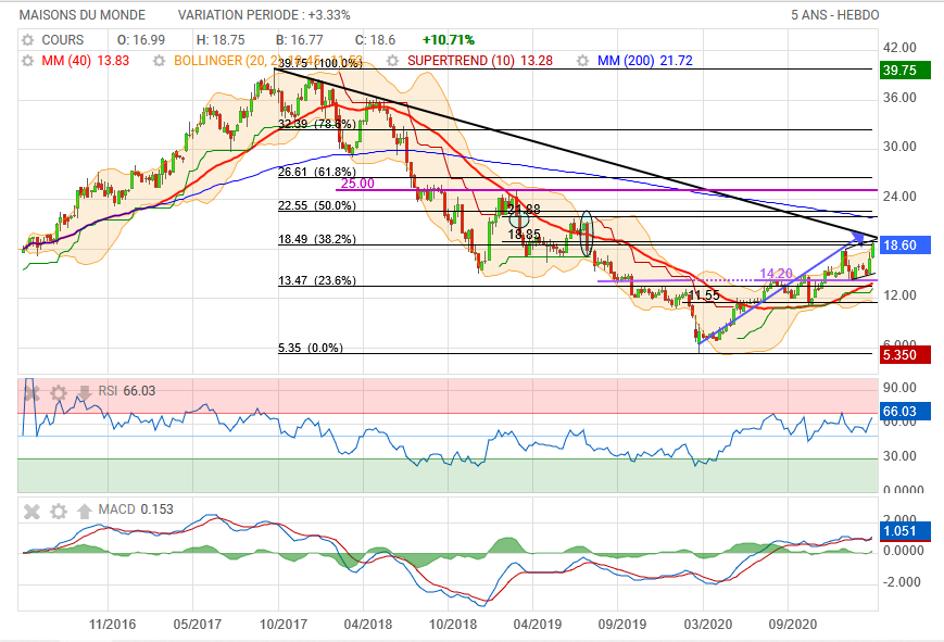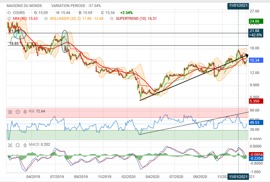 Il a été décidé de ne pas poursuivre la stratégie de développement de l'enseigne Maisons du Monde aux États-Unis dans un avenir proche, afin de concentrer la société sur les opérations européennes et d'améliorer le rendement des capitaux investis. En conséquence, le groupe étudie actuellement toutes les options stratégiques pour Modani dont les fondamentaux restent solides, et a décidé de comptabiliser une dépréciation d'actif de 51 millions d'euros à la fin de 2020. En termes de perspectives, la société rappelle qu'actuellement, 17 % du réseau européen de magasins est complètement fermé (principalement en France, en Italie et en Allemagne) tandis que 10% des magasins (principalement en Italie) ne sont ouverts que 70 % du temps en raison des restrictions liées au Covid-19.