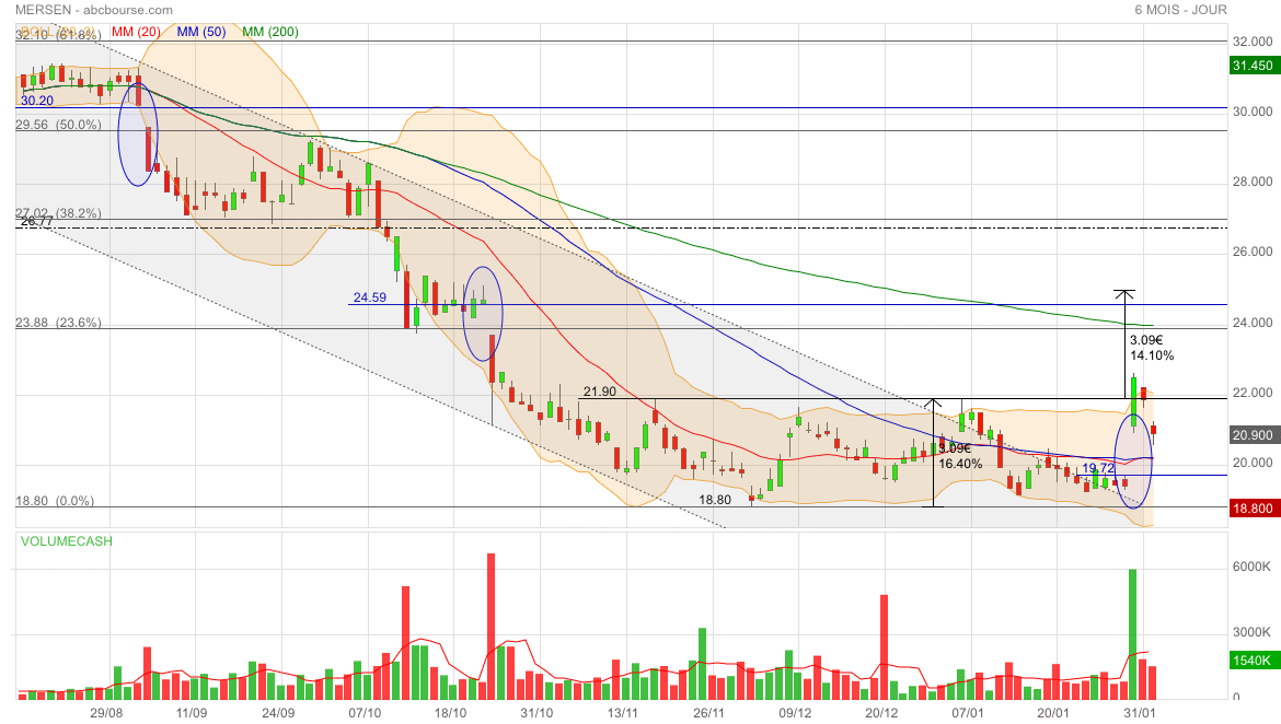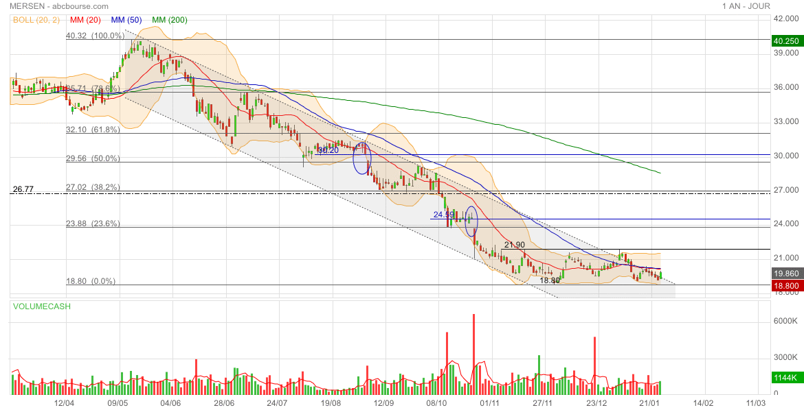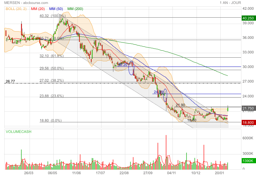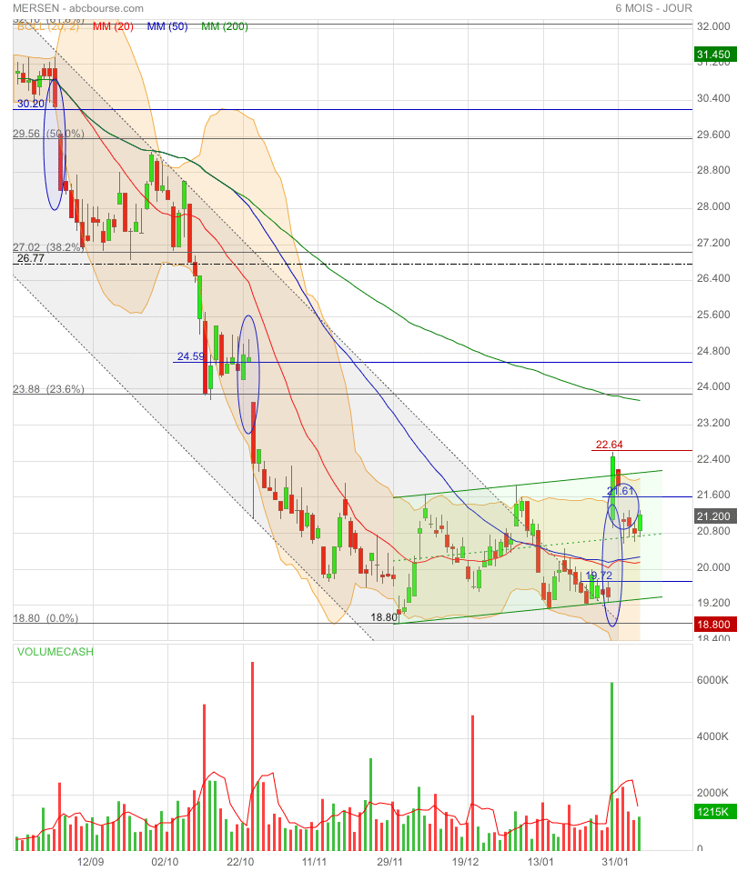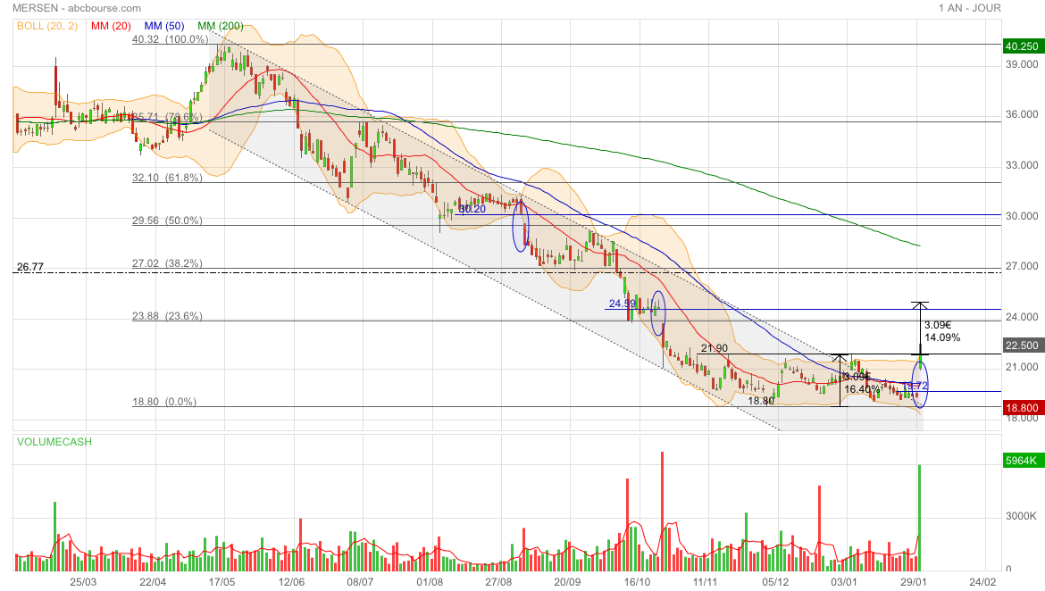 Malgré une belle perf’ ce jour (MERSEN 19,86€ 3,22%), le titre reste en trend neutre. On attend qu’il s’en extirpe, si possible vers le haut 😊
