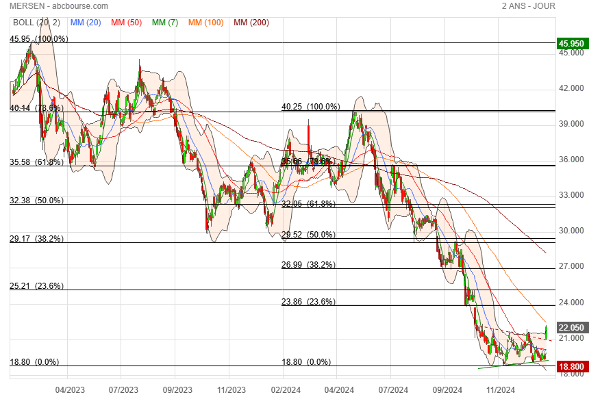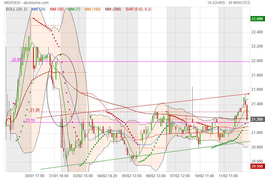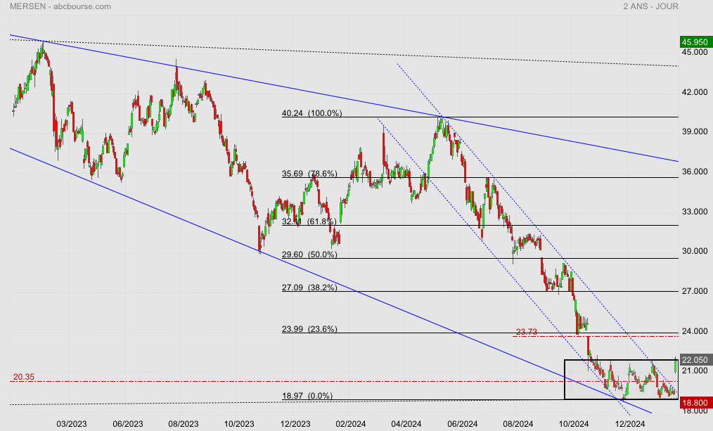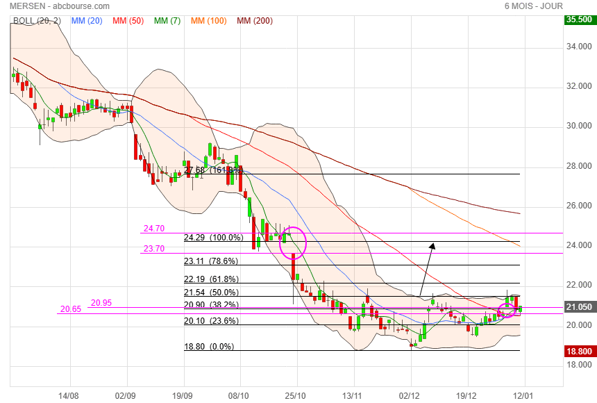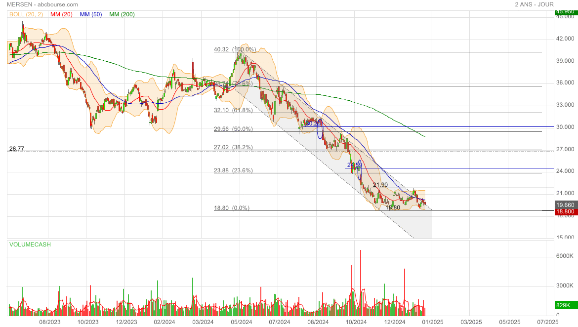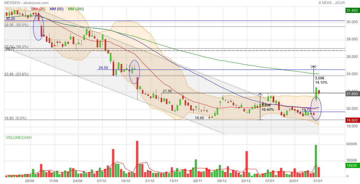 Malgré une belle perf’ ce jour (MERSEN 19,86€ 3,22%), le titre reste en trend neutre. On attend qu’il s’en extirpe, si possible vers le haut 😊