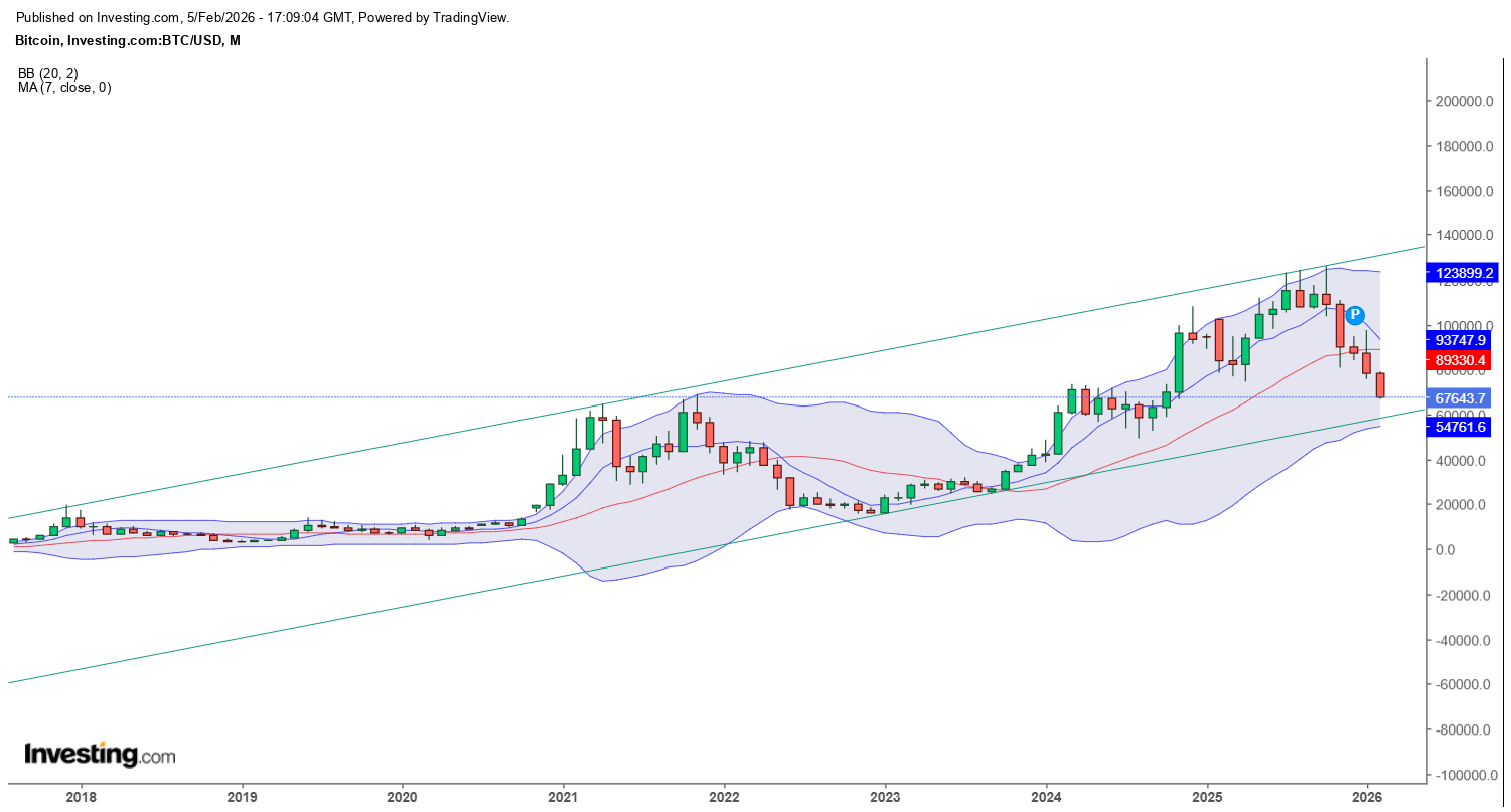la philosophie du bitcoin laisse penser que c'est un très bon investissement, c'est le contraire d'une planche à billet où l'on fabrique de la monnaie de singe. Donc si une monnaie ne peut que baisser et disparaitre la façon dont a été construit le bitcoin laisse penser que ça ne peut que monter.....