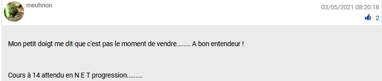 Mon petit doigt me dit que c'est pas le moment de vendre........ A bon entendeur !