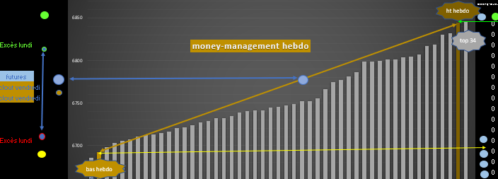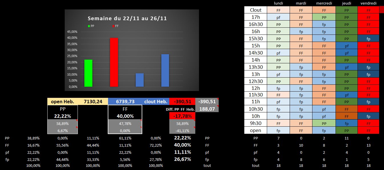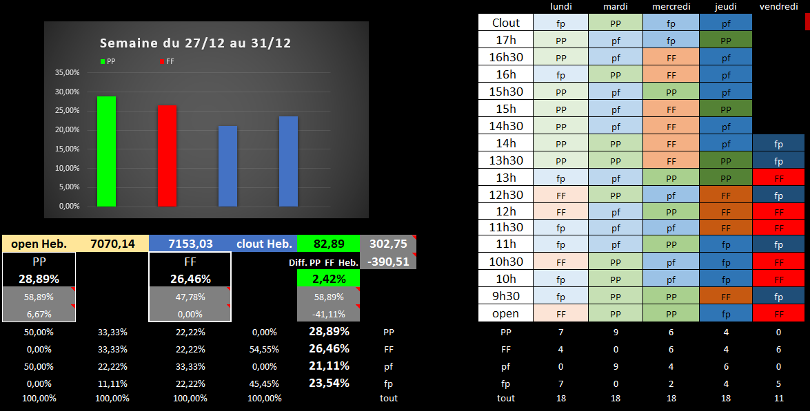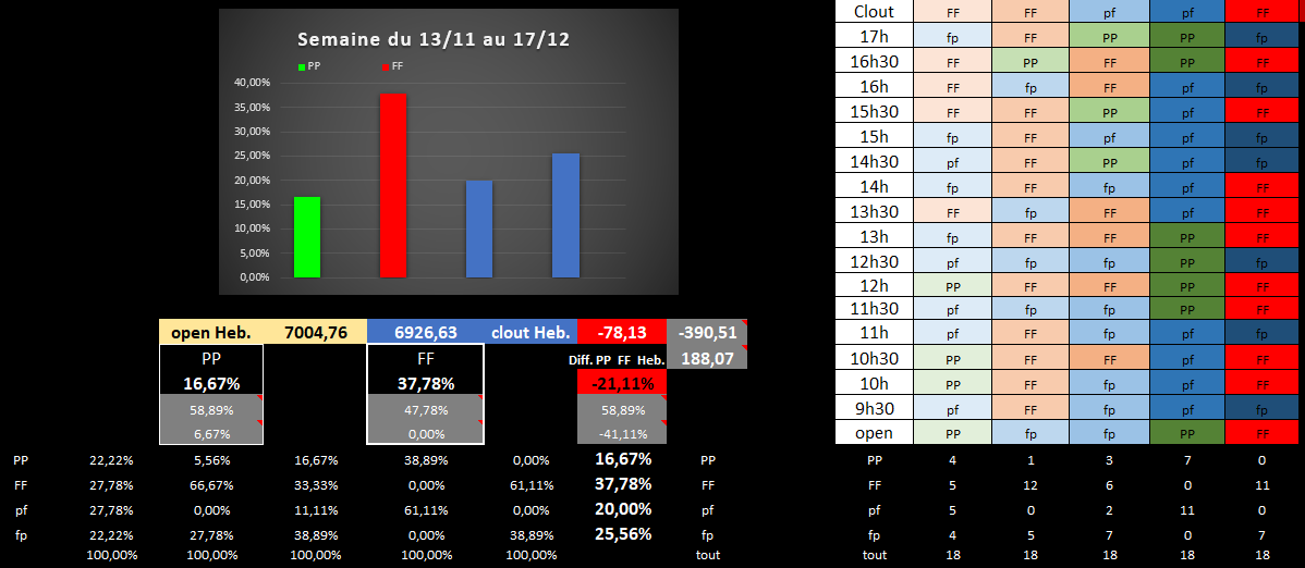une semaine dite baissière entre l'open hebdo et clout hebdo de -78.13 points, donc inférieure à moyenne des semaines baissières.