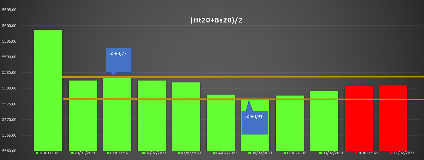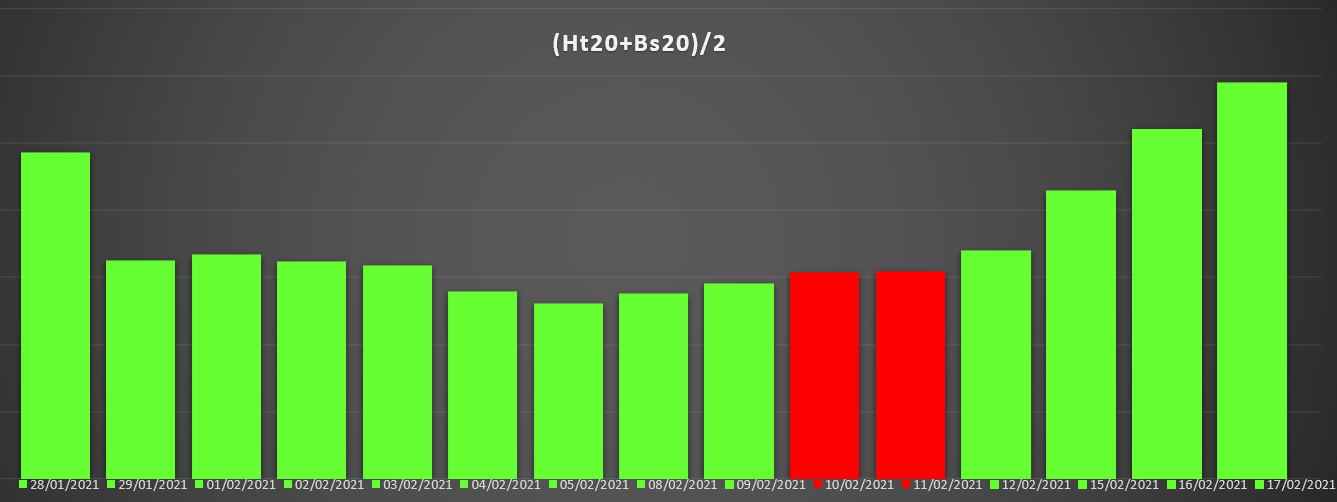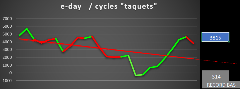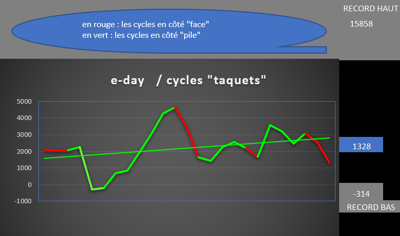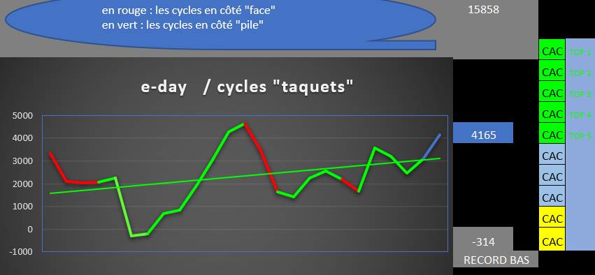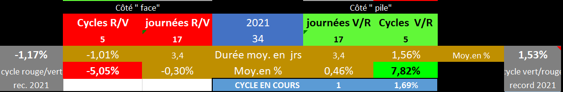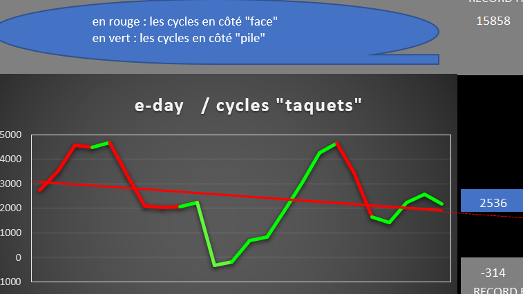 La "20" avec ses hauts et ses bas des bougies 30mn, au sein du dernier cycle "pile" en vert terminé, et du cycle en cours "face" en rouge (2ème jour)