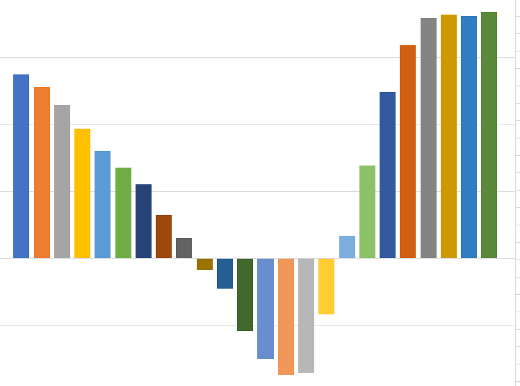 Fin du cycle en vert au-dessus du rouge, on passe en rouge au-dessus du vert.