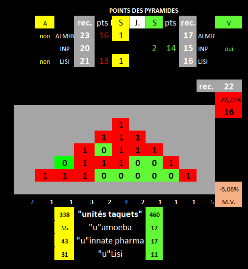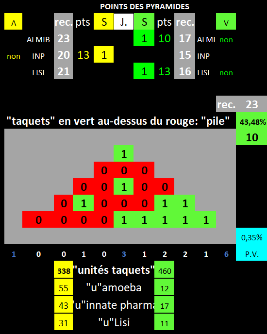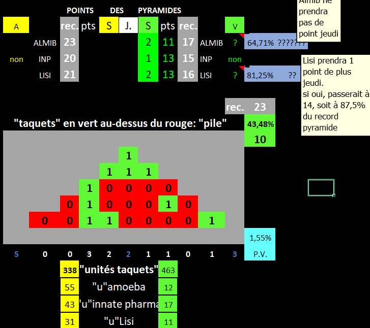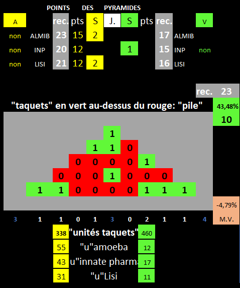 La pyramide est à 10 points soit à 43.48% du max record. Et rien ne bougera de ce côté pendant 5 jours si ce cycle se poursuit seulement que 5 jours.