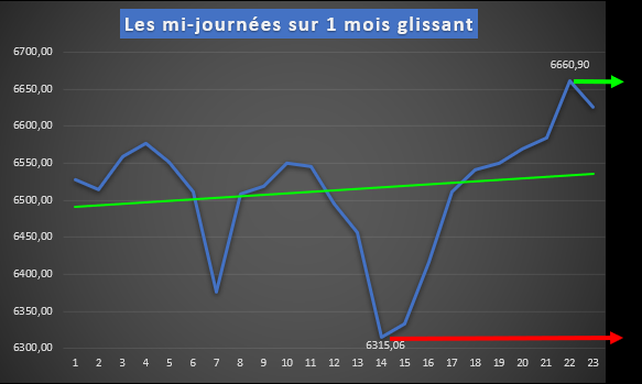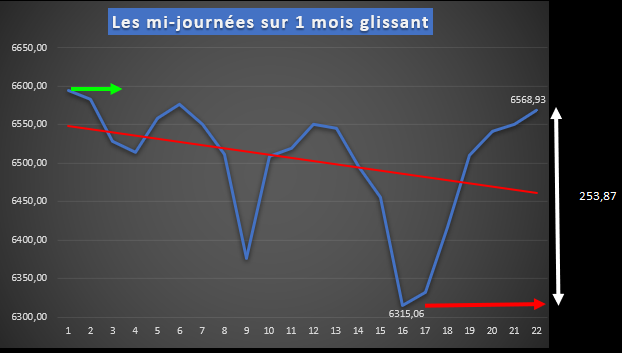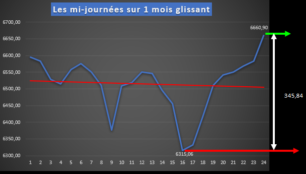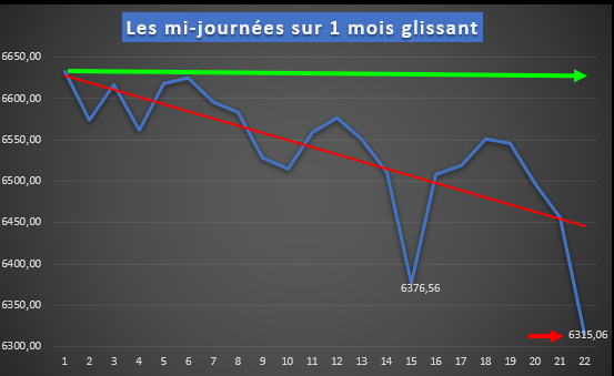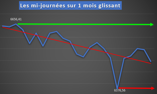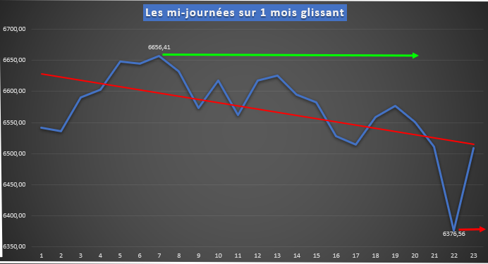 3° Les mi-journées avec un magnifique retour sur niveau courbe de tendance ayant permis un très joli trade: