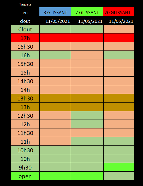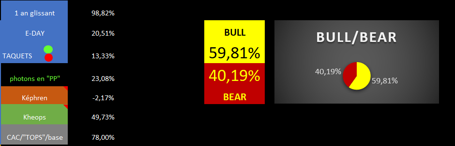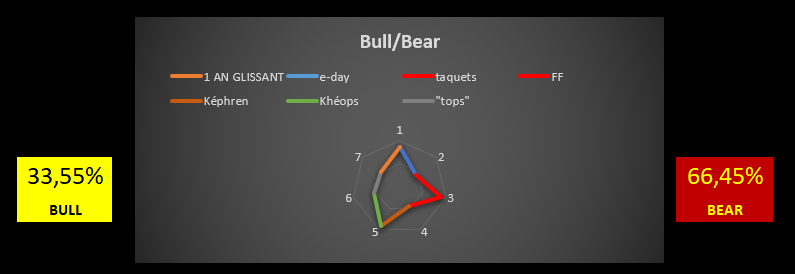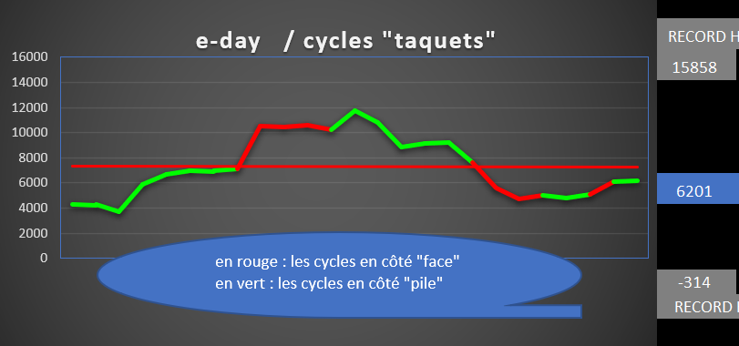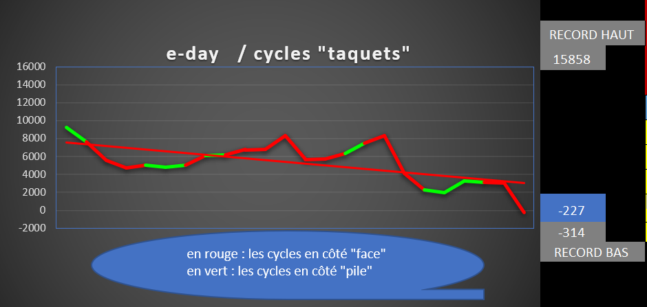Courbe de tendance s'amplifie en rouge, avec même inversion des "taquets" le rouge passant au-dessus du vert.