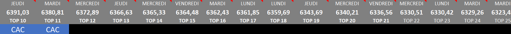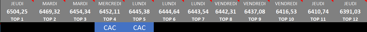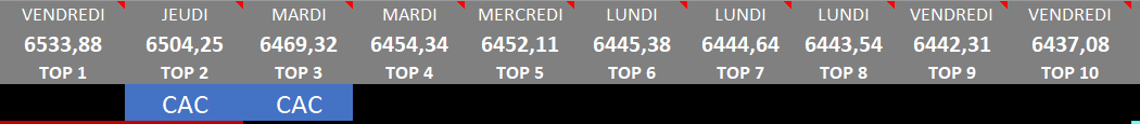 - clout CAC niveau en gros du top 6