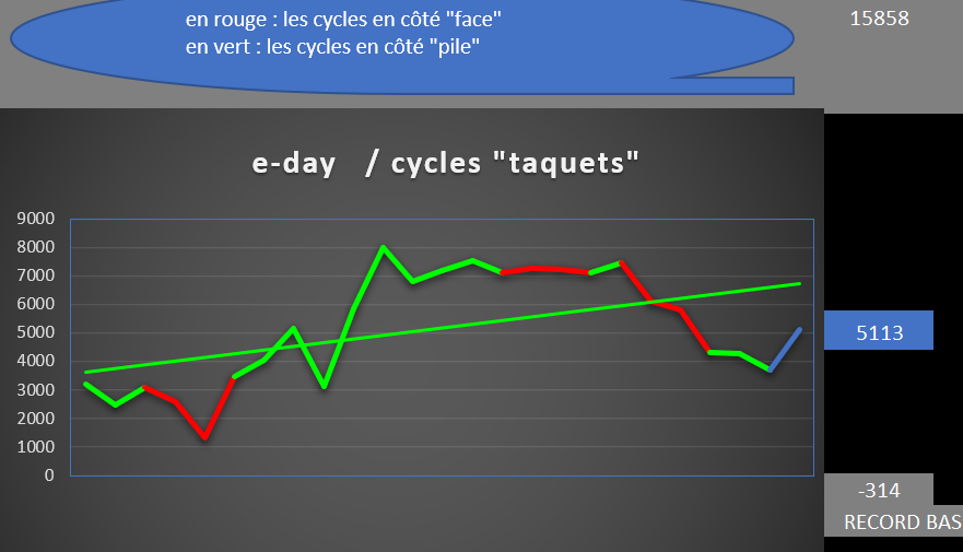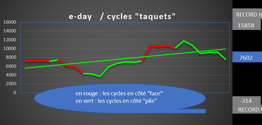 concernant l' "e-day" et les cycles des "taquets": après être monté à 8000, hier on est passé sous la ligne des 6000, donc dégagement progressif des positions bear fait des 6000