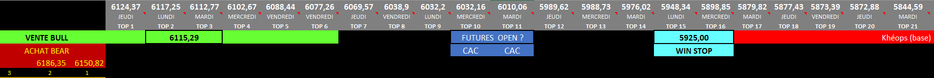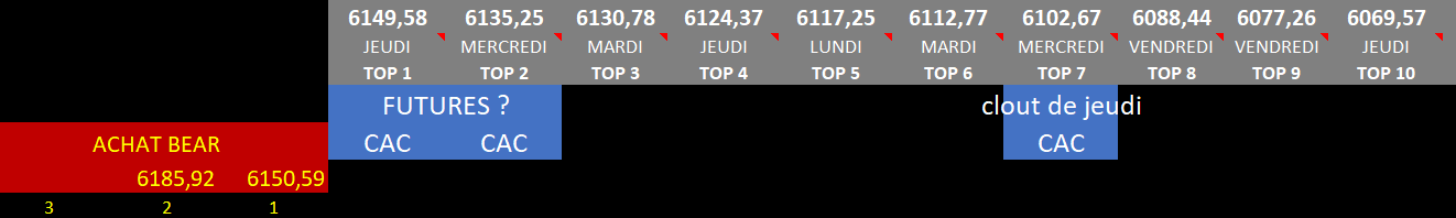 la clout de jeudi s'est faite en gros sur le "top" 7, les futures pour mardi sont pour le moment situé entre les "tops 1 et "tops 2"
