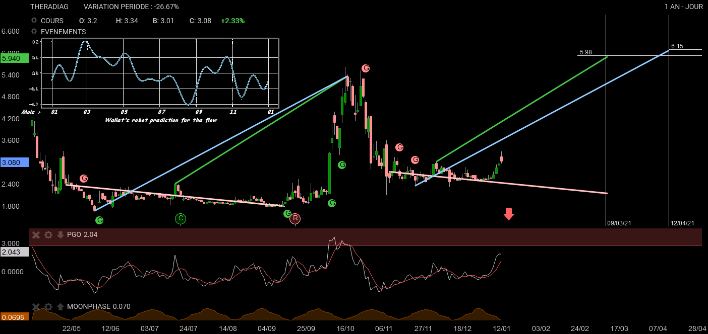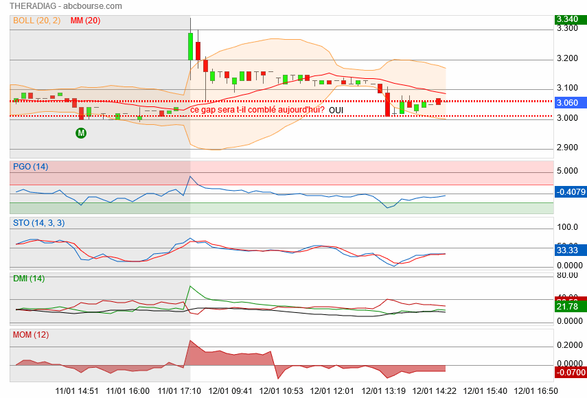 le PGO s'est réchauffée doucement(bientôt positive),une divergence du momentum annonçait bien ce qu'on on voit:le cours s'est débattu pour sortir le nez du gap.par contre la dernière divergence du PGO montre qu'il faudra bien se faire une raison et cette fois à CT...