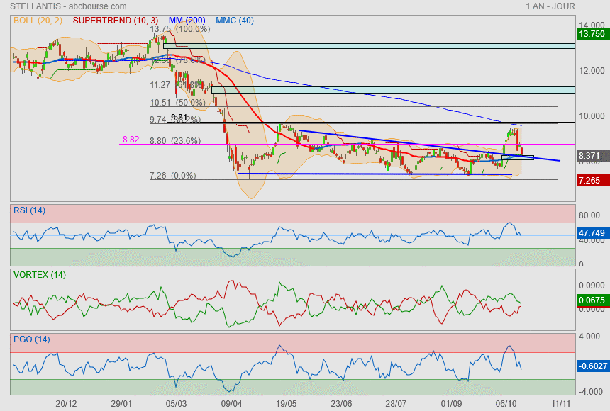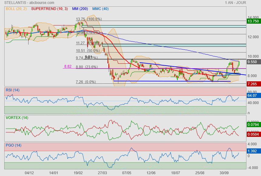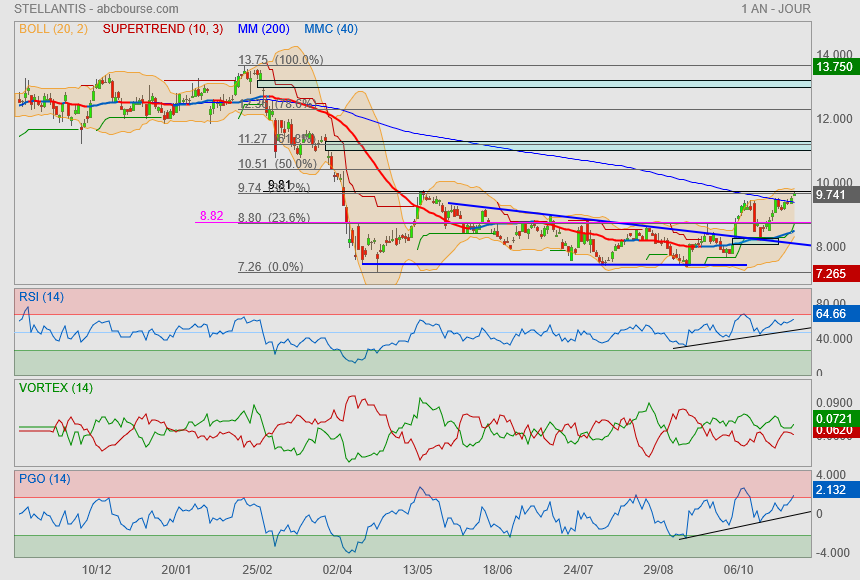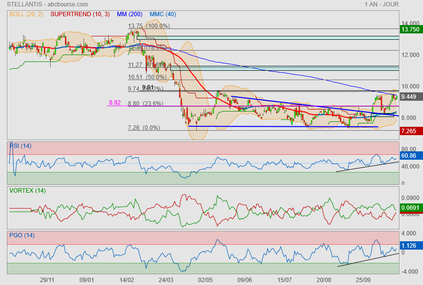 Désormais il va falloir vaincre le symbolique 10€ et on filera sur le gap et le Fibo 61.8% ==> 11.30€.