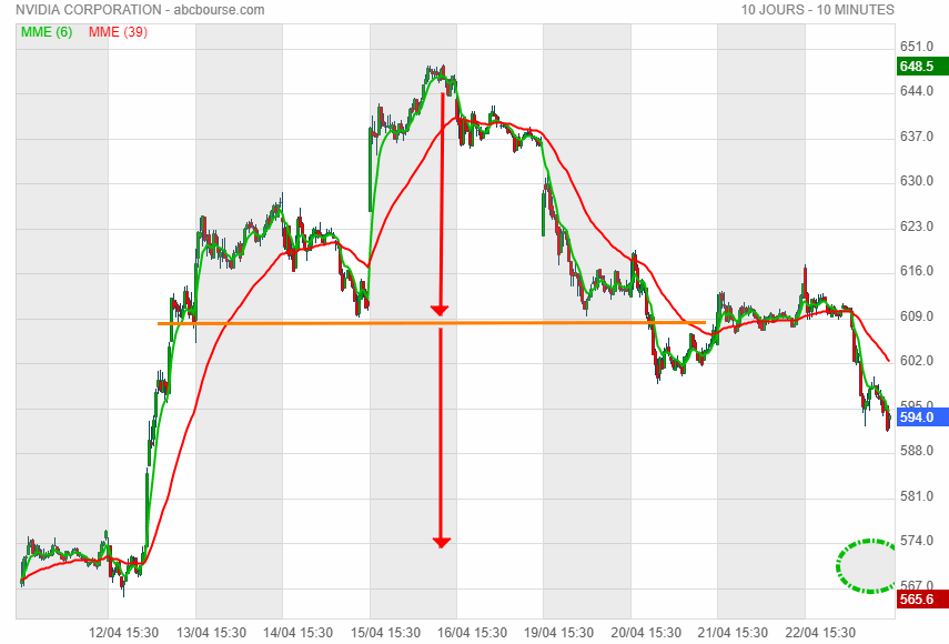 la figure interday signale un sentiment baissier ( les flêches rouges et l'abandonnement