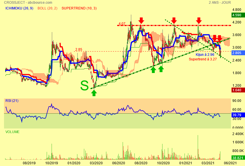 2 le cours est sous sa Kijun bleu signalé à 2.96 euros c' est mauvais