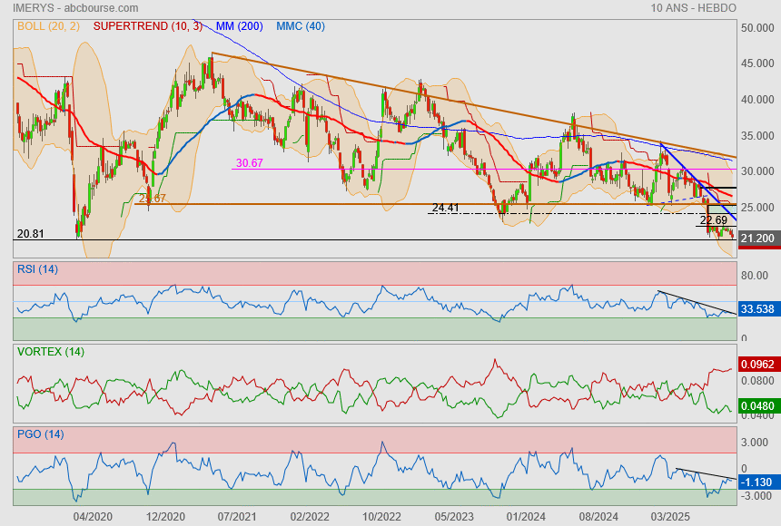 Mardi soir, Imerys a annoncé viser pour 2025 un Ebitda ajusté compris entre 540 millions et 580 millions d'euros, avec des volumes de ventes qui devraient redevenir positifs au second semestre.