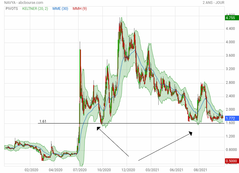 Perso je ne pense pas, elle va peut être revenir à 1,,65..68 et rebondir car le support a l'air d'être défendu, par qui ? KEPLER sous la directive de NAVYA ? Qui ne veut pas que KEPLER casse le cours en tirant les BSA...