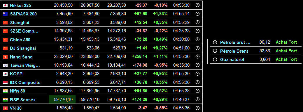 A New York, le baril de West Texas Intermediate (WTI), pour livraison en février, a pris 2,06% et terminé à 79,46 dollars. En séance, le prix de référence du brut américain avait dépassé 80 dollars pour la première fois depuis un mois et demi (17 novembre).