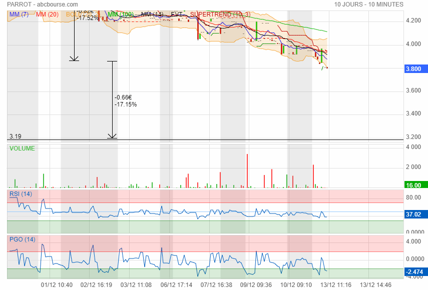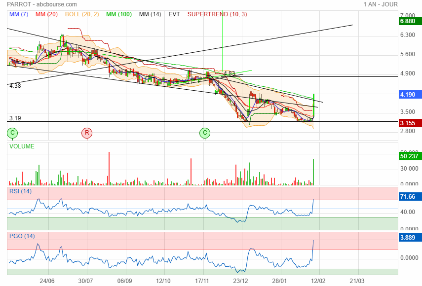 Résultats. Grâce à un gros effort de réduction des coûts, au recentrage de l'offre et à la montée en puissance des produits à valeur ajoutée, les comptes de Parrot sont en train de s'améliorer sensiblement. Alors que le résultat net était de -22,1 ME sur la première partie de 2020, il est passé à -2,8 ME à l'issue des six premiers mois de 2021. Avec l'augmentation des facturations, Parrot pourrait enfin afficher prochainement un résultat net positif... Depuis un an, on assiste pourtant à une chute de plus de 50% de l'action du concepteur de drones. Cette situation représente une belle opportunité. Nous conseillons de se placer sur une valeur qui connaît une amélioration régulière de ses fondamentaux. On sera néanmoins attentifs aux contraintes d'approvisionnement qui peuvent freiner l'activité...