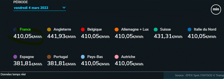 A 20H00 le cours du MW d'électricité touchera les 285 €... Sachant que l'on est dimanche et que toutes les usines sont fermées.