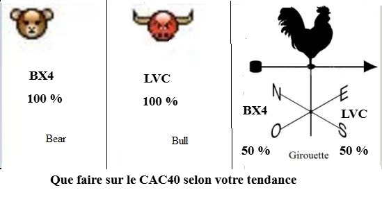 Si l'on venait à se rapprocher des 7500 points je partirai sur un retour à l'équilibre entre BX4 et LVC avec 12,5% chacun soit la position "Girouette" afin de neutraliser une suite qui pourrait s'avérer incertaine.