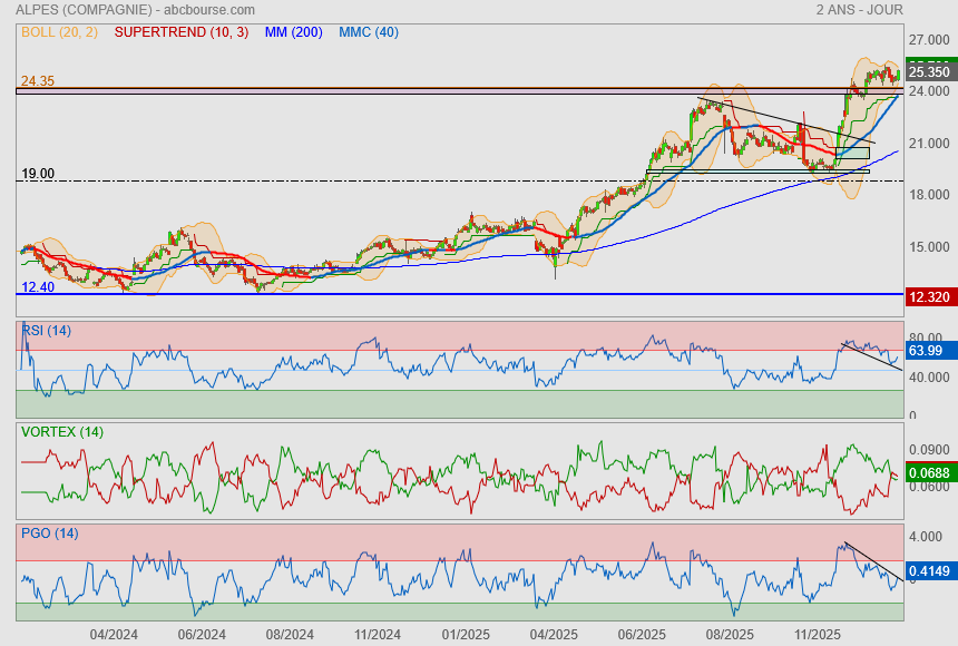(Boursier.com) — Compagnie des Alpes avance de 1,5% à 24,3 euros en début de séance. La saison 2025/26 est officiellement lancée et se profile sous de bons auspices, malgré des effets de base toujours plus difficile, explique TP ICAP Midcap. Alors que tous les ingrédients semblent réunis pour que le groupe connaisse un nouvel exercice record, le profil de rentabilité et de génération de trésorerie du groupe apparaît durablement renforcé. Les nouvelles attentes d'activité, de profitabilité et d'investissements du broker l'amènent à penser que le modèle du groupe a atteint, et même dépassé, son seuil de soutenabilité permettant de financer confortablement aussi bien ses investissements que sa politique de redistribution... De quoi réitérer son avis 'achat' avec une cible remontée de 26 à 29,5 euros.