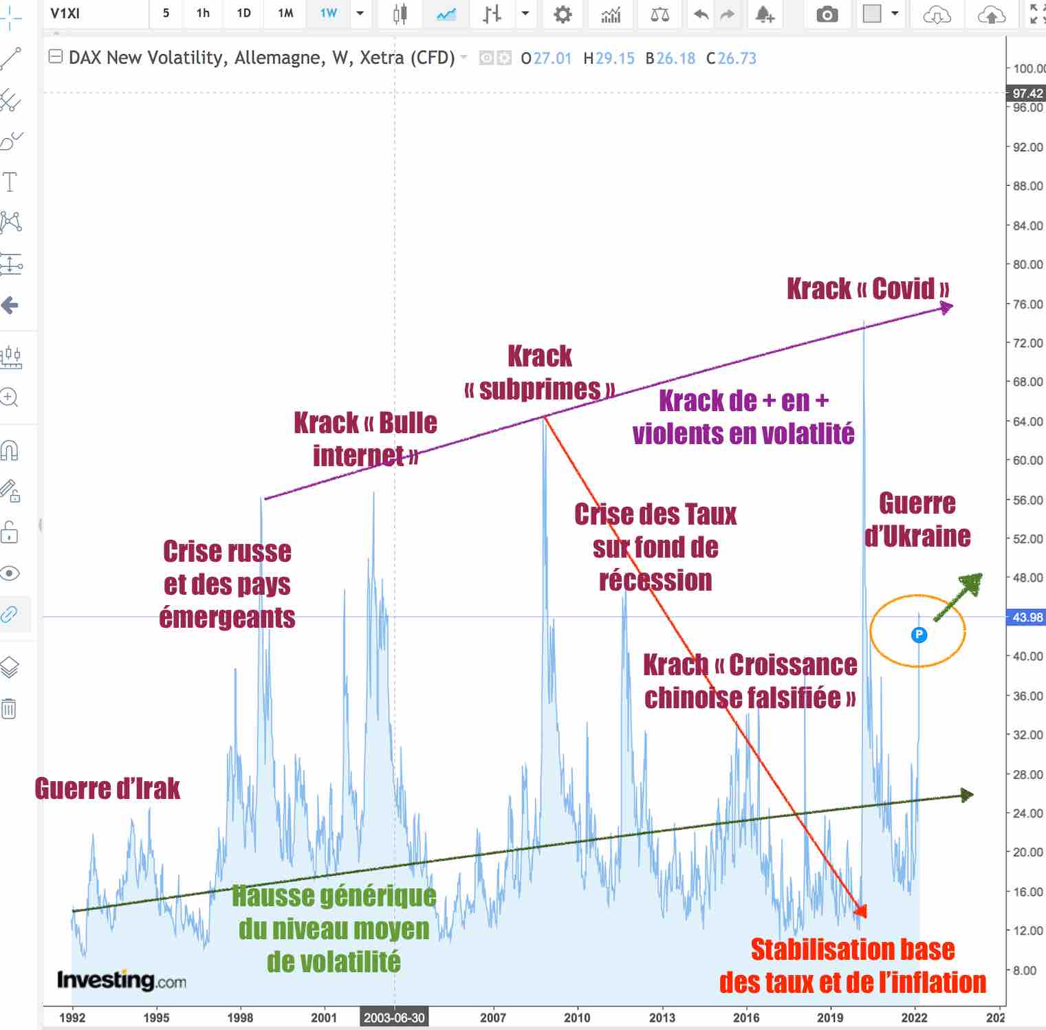 Il est probable que l'on se situerait dans un krach de niveau intermédiaire, le krach majeur de volatilité du Covid ayant purgé les tensions accumulés résultant des krachs mineures de volatilité.