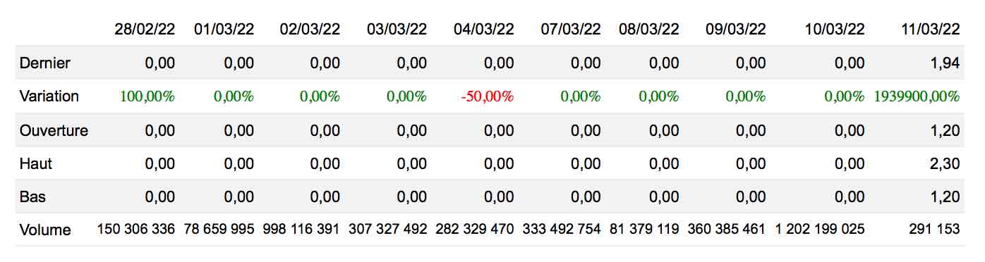 En ce moment je pense qu'il faut laisser trainer des ordres 15 % en dessous du cours de cotation.