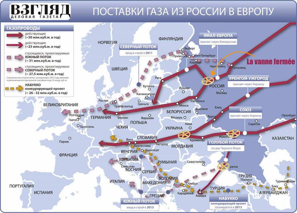 La carte des autoroutes du Gaz montre qu'on serait pleinement touché par les sanctions vu où va le tuyau...