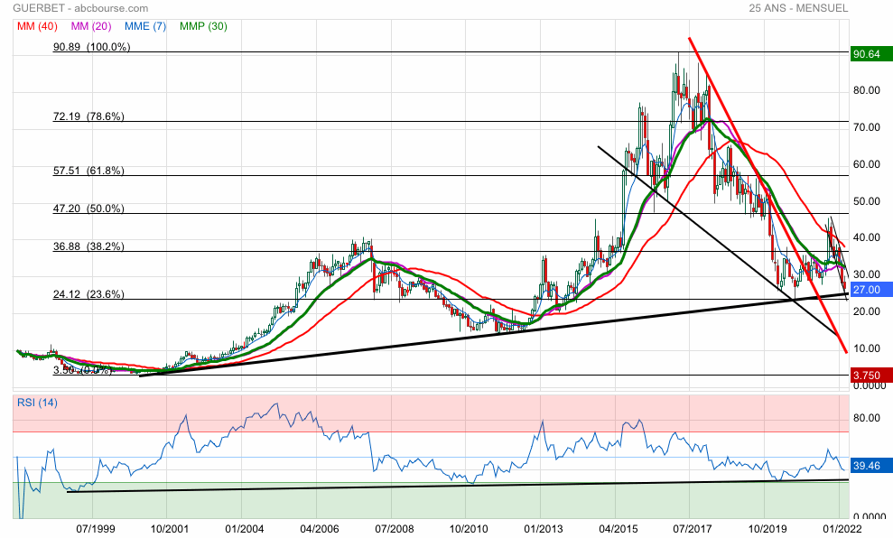 Test du support long terme vers 25.50€ et du fibo 24.12€ Ce point est le point testé crise Covid pourtant l’entre se porte mieux..
