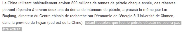 Cela dit ça fait 50 ans au moins que le pétrole extrait de Chine vient majoritairement de cette région