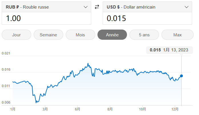 "Le rouble a tout de même perdu plus de 13 % par rapport au dollar depuis l'entrée en vigueur, le 5 décembre, d'un plafonnement occidental des prix des exportations de pétrole russe.....[ ]...