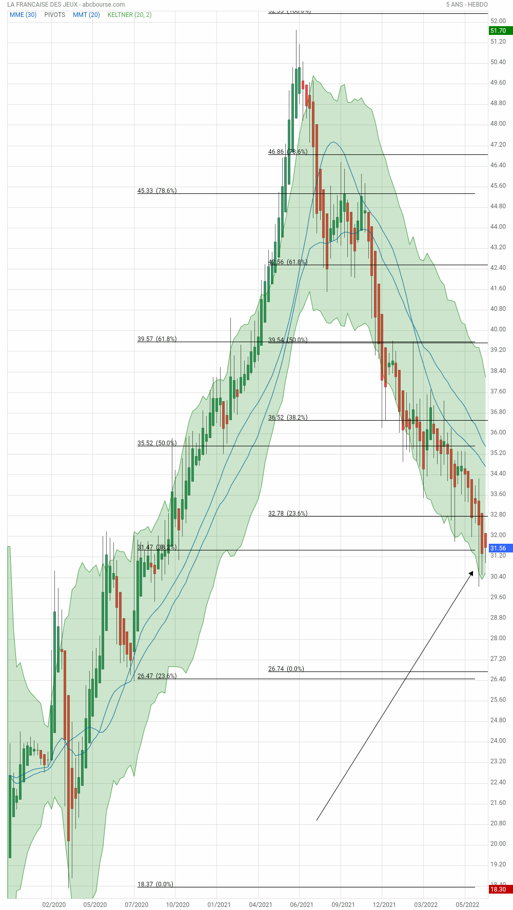 Si 33 n'est pas franchi sous peu, il faudra se replier sur le fibo 24 en bas avant de rebondir.