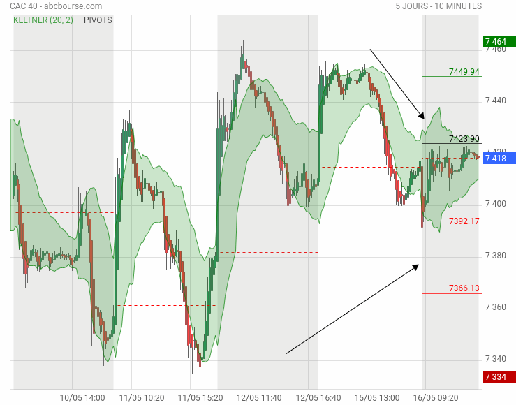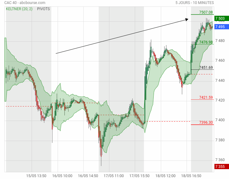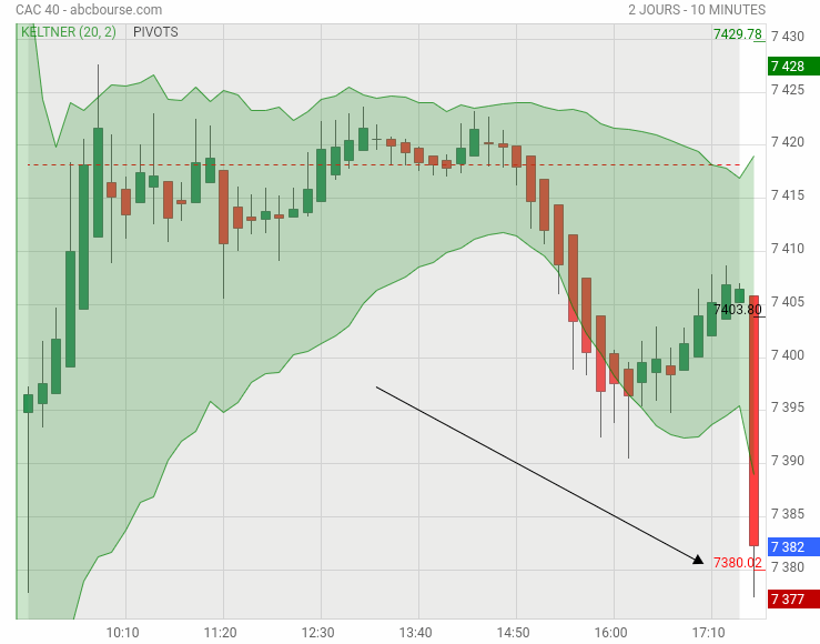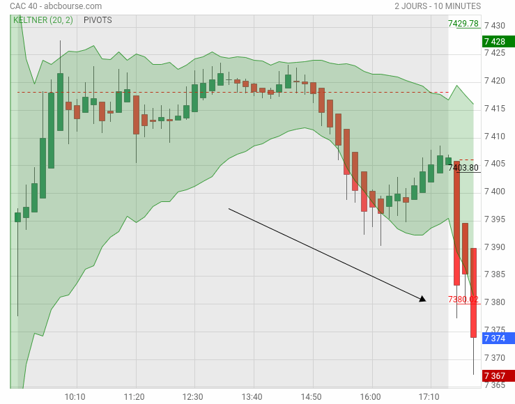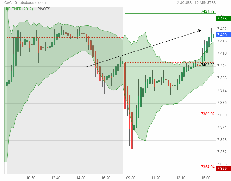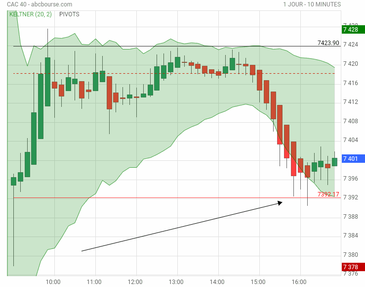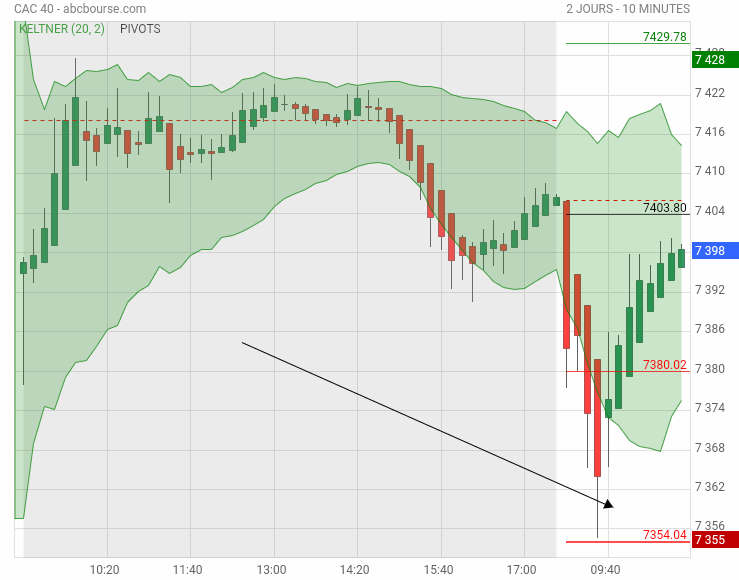 Le début du move ayant commencé sur le pivot PP, en volatilité moyenne,, le Cac irait toucher le pivot S2.