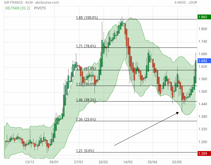 Air France en beau rebond juste au milieu des 2 fibos, vers.1.40