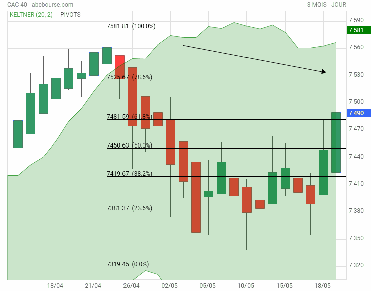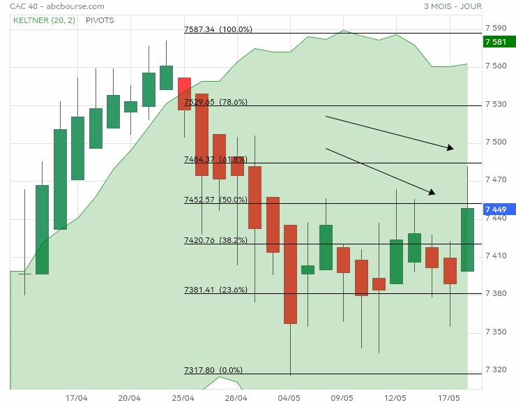 Le 50%, 7450 a longtemps résisté ces jours derniers, entre le 5 Mai et le 15 Mai, puis le 78% aujourd'hui